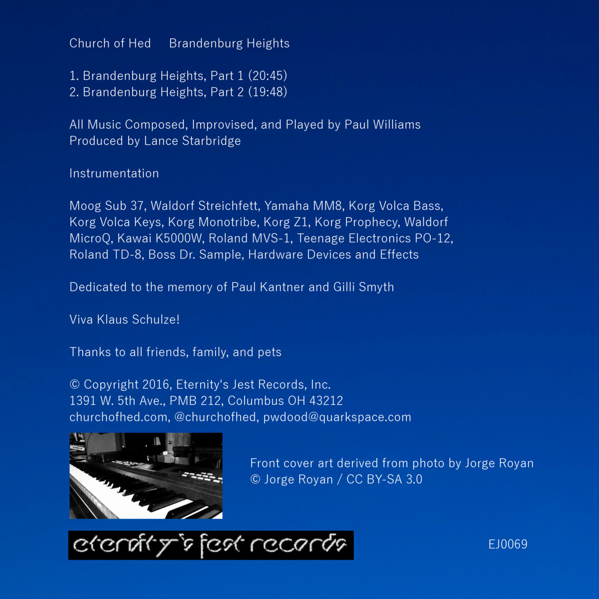 Church of Hed is the solo electronic space prog project of Quarkspace drummer/synthesist, Paul Williams. RIYL: Floyd, the Orb, Stereolab -- Quarkspace is an American band together since the mid 80s. Known for combining spacerock and electronics with folk and progressive songwriting, their influences straddle the American and English psychedelic scenes of the late 60s with more modern influences. ... more